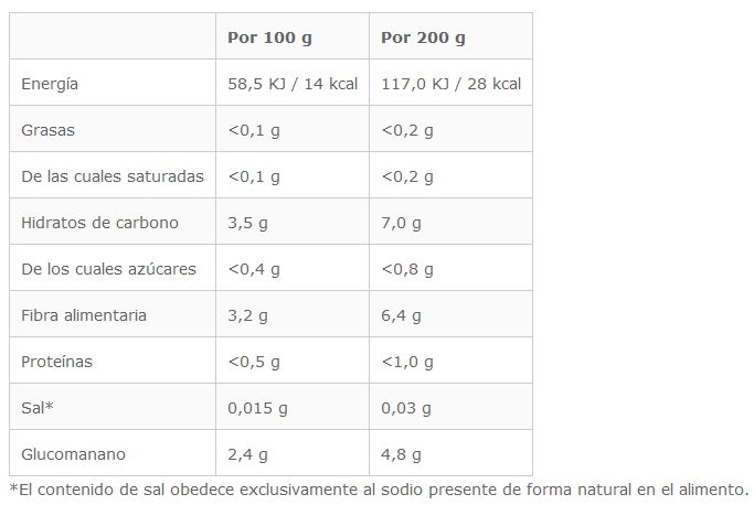 - No contiene apenas calorías (20 calorias por 100 gramos).