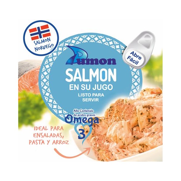 El salmón en su jugo es muy fácil de preparar porque ya viene preparado. Solo tendrás que tener muchas ganas de disfrutar de un sabor único en tus platos. Es tan fácil como tirar de la anilla y voilá, ¡Salmón Dumon noruego listo para servir!