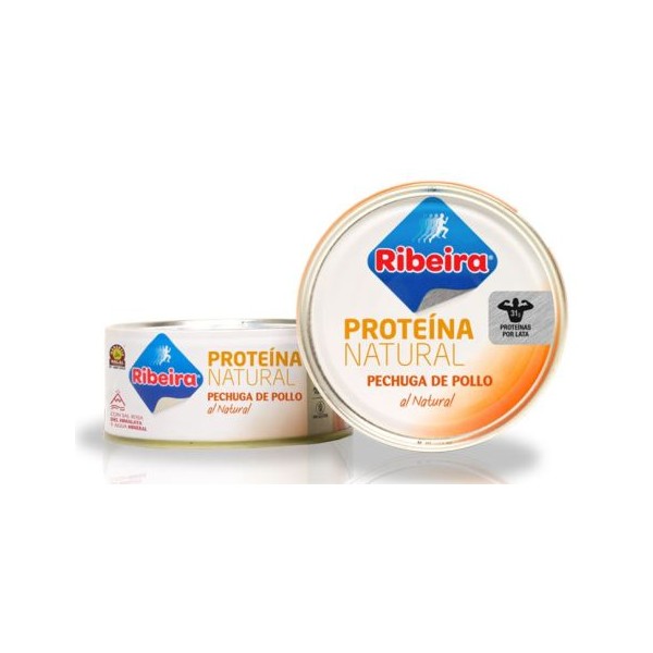 La Pechuga de Pollo al Natural de Ribeira tiene un exclusivo sistema de enlatado en crudo que le proporciona un alto contenido en proteínas superior a cualquier otra pechuga de pollo en conserva convencional, además de no contener nada de aceite al estar en agua, pero manteniendo el excelente sabor de la pechuga de pollo.