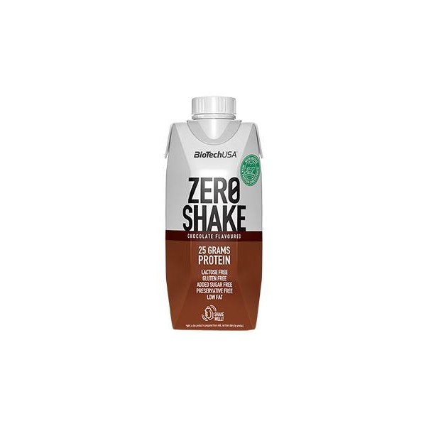 Zero Shake de BioTech USA es el nuevo batido proteico listo para tomar en cualquier momento con un sabor irresistible, sin azúcares añadidos, sin lactosa y que te proporciona 25 gramos de proteína procedente del concentrado de proteína de suero de leche nativa de alta calidad.