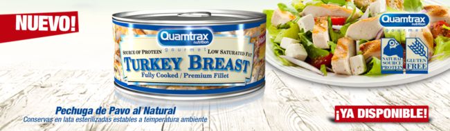 Turkey Breast de Quamtrax Gourmet son unas deliciosas pechugas de pavo cocidas diseñadas especialmente para el consumo de deportistas con el objetivo de aportar el máximo de proteínas y el mínimo de grasas, carbohidratos y sal.