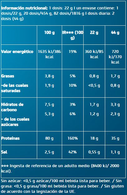 También será muy beneficiosa si lo que buscas es un suplemento con casi el 100% de contenido de proteína, en agradables y cremosos sabores, o simplemente si deseas una proteína para el post entreno de absorción instantánea para una óptima recuperación muscular.