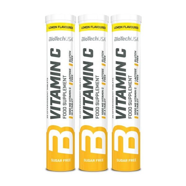 Vitamin C Efervescente de BioTech USA es un suplemento en forma de comprimidos efervescentes con un refrescante sabor a limón que proporciona 1.000 mg de vitamina C.