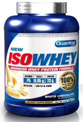 IsoWhey de Quamtrax Nutrition es un suplemento proteico en polvo que contiene una mezcla de aislado y concentrado de suero de leche obtenido por microfiltración de flujo cruzado, un proceso por el que se consigue una proteína que mantiene un valor biológico muy alto, pero con unas bajas concentraciones de lactosa, grasa y carbohidratos.