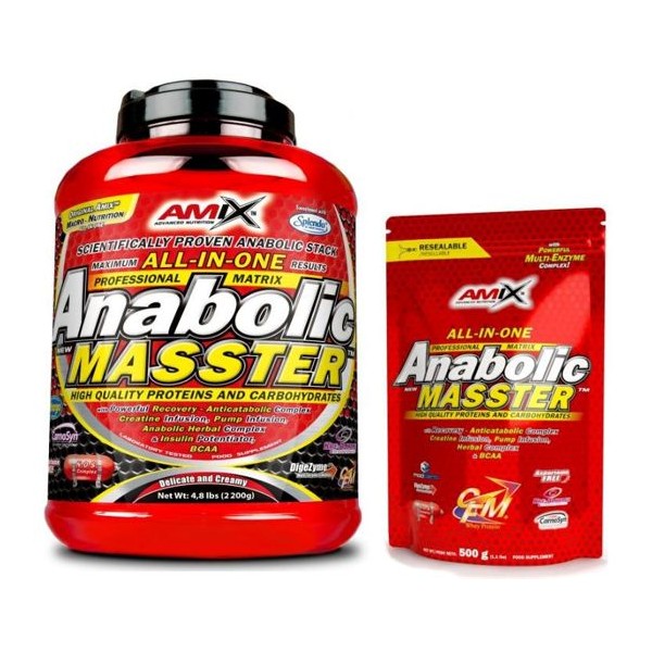 Anabolic Masster de la marca nº1 en Europa Amix™ Nutrition, es un suplemento en polvo que contiene una macro formula todo en uno especialmente diseñada para la nutrición de atletas con una exigencia física máxima que quieren desarrollar su masa muscular sin aportar nada de grasa.