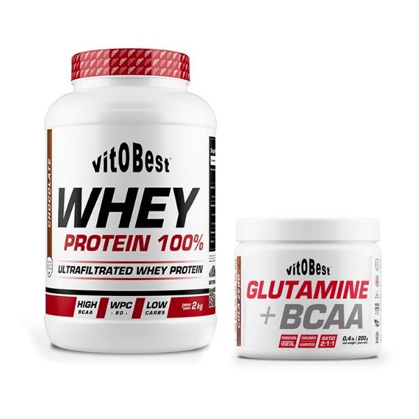 WHEY PROTEIN 100% 2 KG + GLUTAMINE + BCAA 200 GR